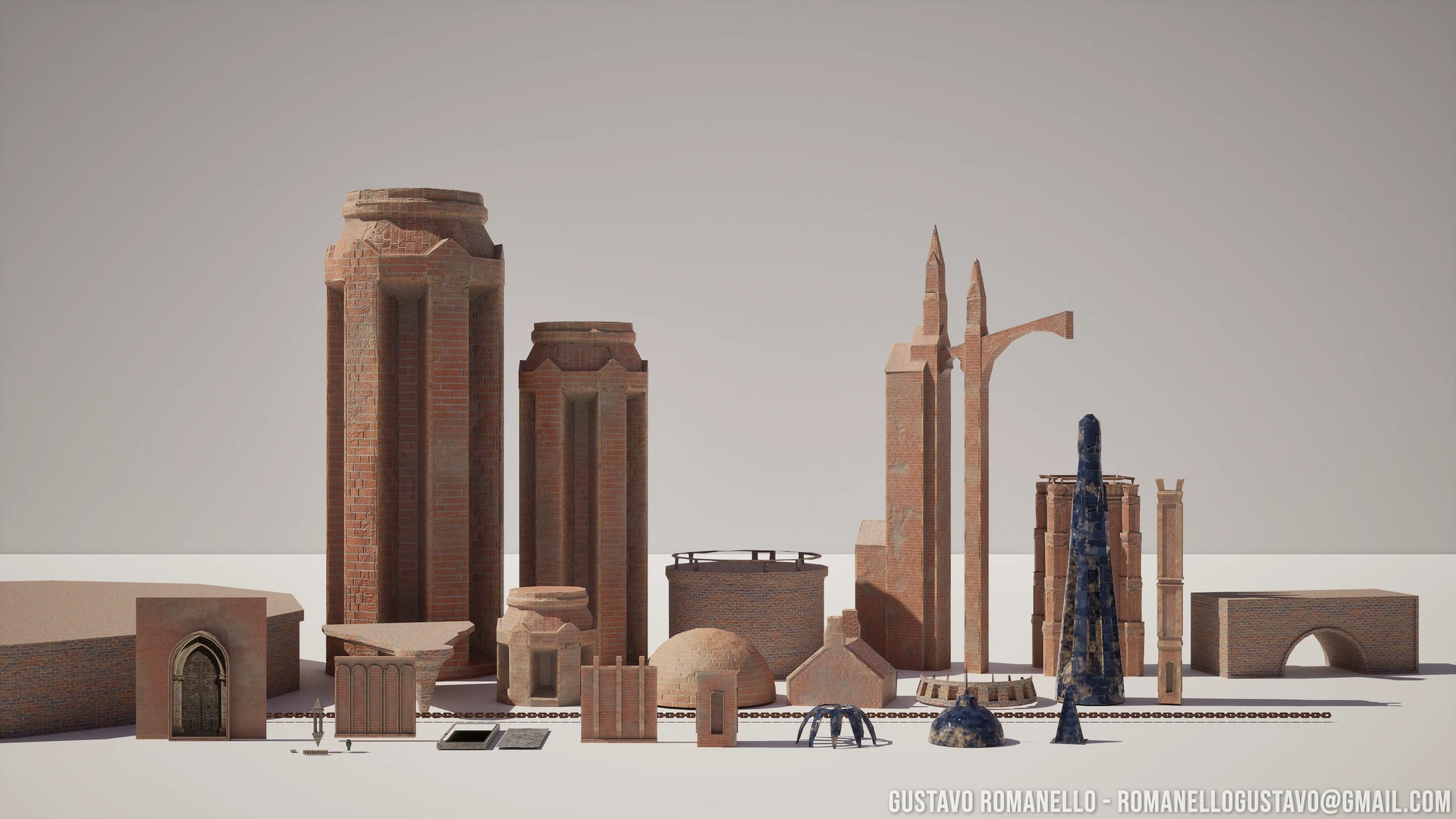 For this project, I modeled a set of buildings and connector pieces to create a kit-bashed final composition. It was challenging to conceive of an architectural piece of this scale, trying to maintain real-life proportion while optimizing the amount of geometry from the camera's distance. Some details were better achieved in the modeling process, while others were more effectively realized in the texture itself. For the texturing, I used Substance Painter and then exported the project to Unreal Engine to add foliage and render out.